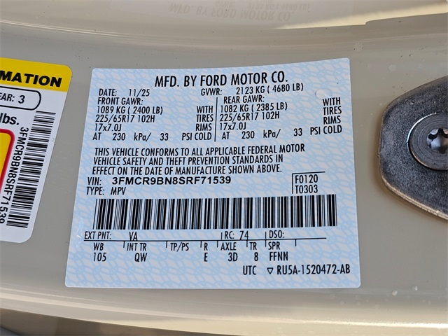 - VIN : 3FMCR9BN8SRF71539