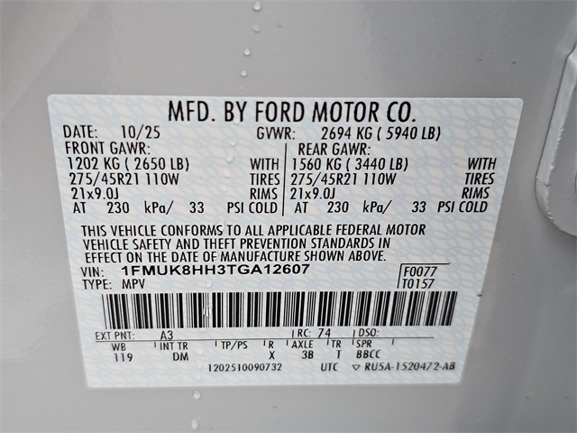 - VIN : 1FMUK8HH3TGA12607
