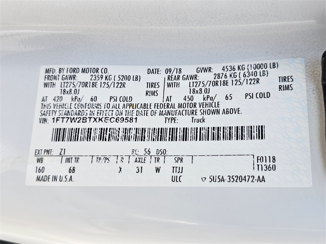 - VIN : 1FT7W2BTXKEC69581