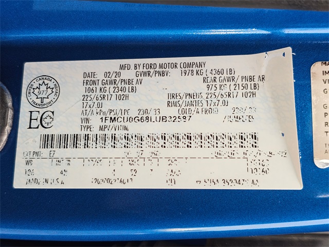 - VIN : 1FMCU0G68LUB32587