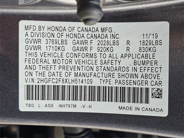 - VIN : 2HGFC2F8XLH514109