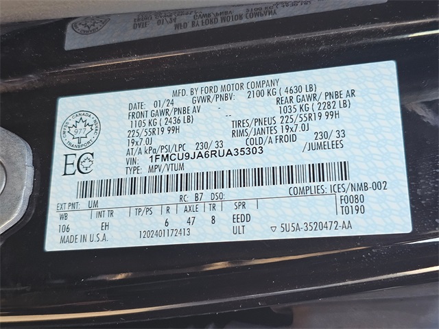 - VIN : 1FMCU9JA6RUA35303