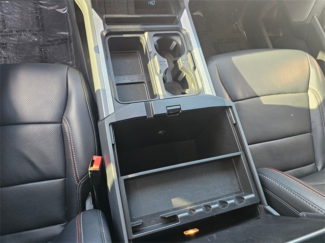 Interior: Black Onyx leather 40/console/40 seats, Lariat Ultimate Package features, dual-zone electronic climate control, 12" productivity screen, 120V outlet, 1-touch up/down driver & passenger windows, leather-wrapped steering wheel w/ audio controls, outside temperature display, particulate air filter, power locks & windows, tilt/telescoping steering column, B&O sound system, BLIS w/ cross-traffic alert, connected navigation (1-yr trial), electrochromic mirror, FordPass Connect 5G Wi-Fi hotspot